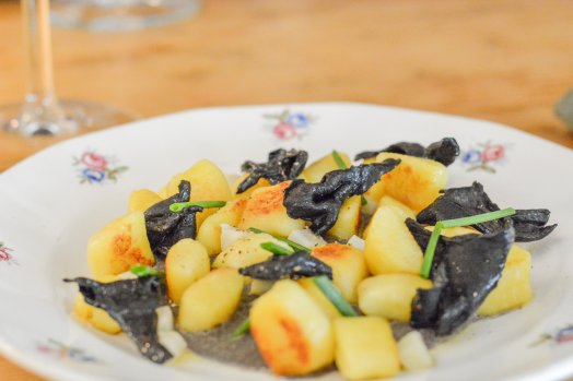 Lorsque les plats arrivent sur la table, il n’y a plus qu’à goûter. On en revient encore au temps, lorsque Pieter nous dit qu’aujourd’hui, « on oublie de le prendre pour partager et échanger. Et on ne fait pas de la bonne cuisine en claquant des doigts ! ». Entre la truite marinée au genièvre, les gnocchis de pommes de terre accompagnées de trompettes de la mort ramassées ici, le paleron de bœuf façon grand-mère, la polenta aux cèpes gratinée au beaufort, nous redécouvrons des saveurs méconnues d’une subtilité rare, agrémentées d’herbes fraîches. Mention spéciale pour les sauces et bouillons travaillés jusqu’à trois jours pour le paleron. Et la carte des boissons est une encyclopédie de plus de 80 références…
